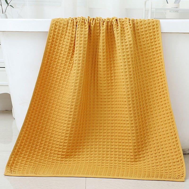 Yellow Luxury Cotton Waffle Bath Towel, Soft, Quick-Drying, Water Absorbent, Unisex, for Home Use