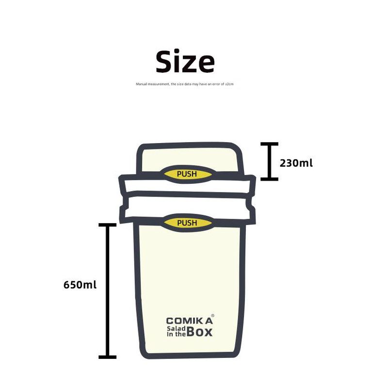 Revolutionize your on-the-go meals with our innovative "Salad in the Box" Portable Meal Cup! This cleverly designed container is perfect for enjoying fresh salads, yogurt parfaits, overnight oats, fruit, nuts, and more, wherever your day takes you. Its smart dual-compartment system keeps your main ingredients separate from toppings or dressings until you're ready to mix and eat, ensuring ultimate freshness and crunch.