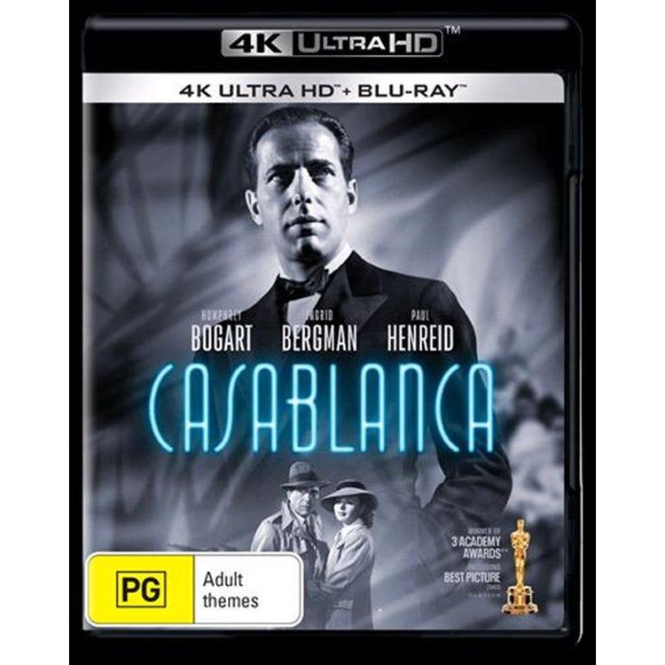 Casablanca: easy to enter, but much harder to leave, especially if your name is on the Nazis' most-wanted list. Atop that list is Czech Resistance leader Victor Laszlo (Paul Henreid), whose only hope is Rick Blaine (Humphrey Bogart), a cynical American who sticks his neck out for no one...especially Victor's wife Ilsa (Ingrid Bergman), the ex-lover who broke his heart. So when Ilsa offers herself in exchange for Laszlo's safe transport out of the country, the bitter Rick must decide what's more important - his own happiness or the countless lives that hang in the balance. Winner of three Academy Awards including Best Picture, Casablanca is "America's most popular and beloved movie - and rightly so" (The Motion Picture Guide)!