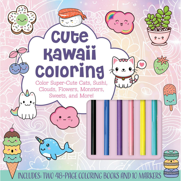 Jump into the world of kawaii withCute Kawaii Coloring--this fun kit includes 2 coloring books and 10 colored markers.