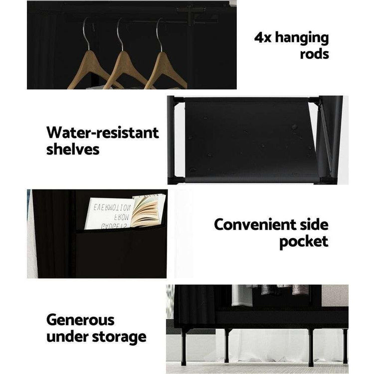 Artiss Large Portable Clothes Closet Wardrobe with Shelf Black