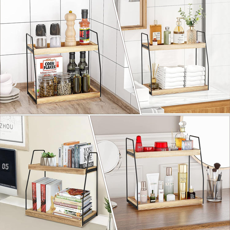 - VERSATILE 2-TIER STORAGE DESIGN: Maximize your countertop space with this wooden coffee station organizer, ideal for storing coffee syrups, mugs, condiments, tea bags, or spice jars. Its open design allows quick access and easy organization.