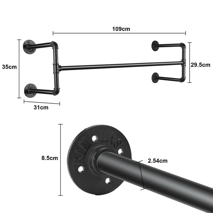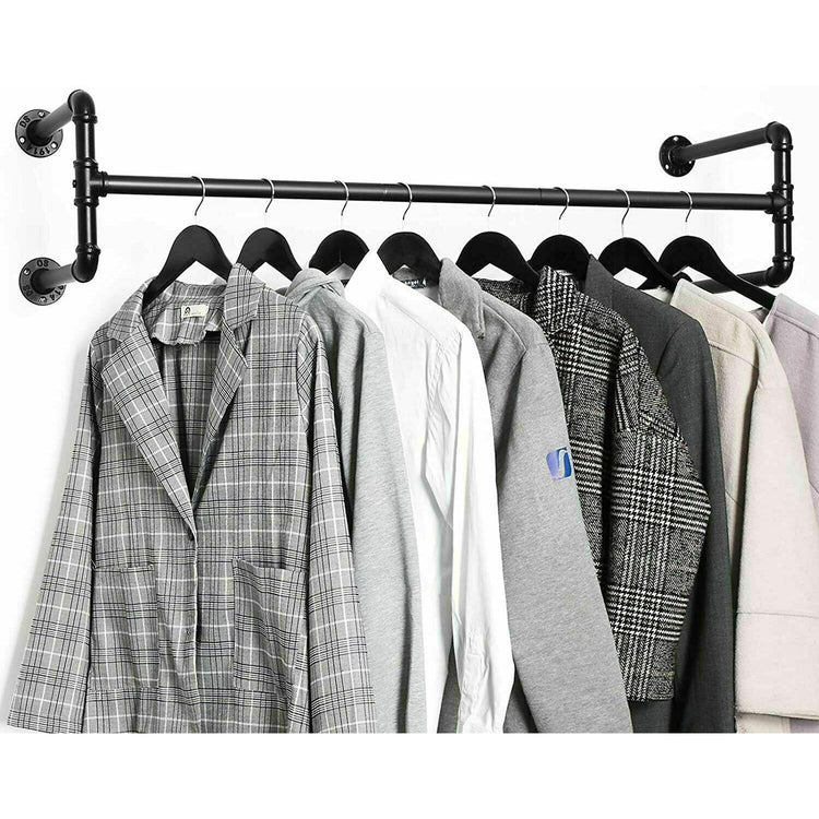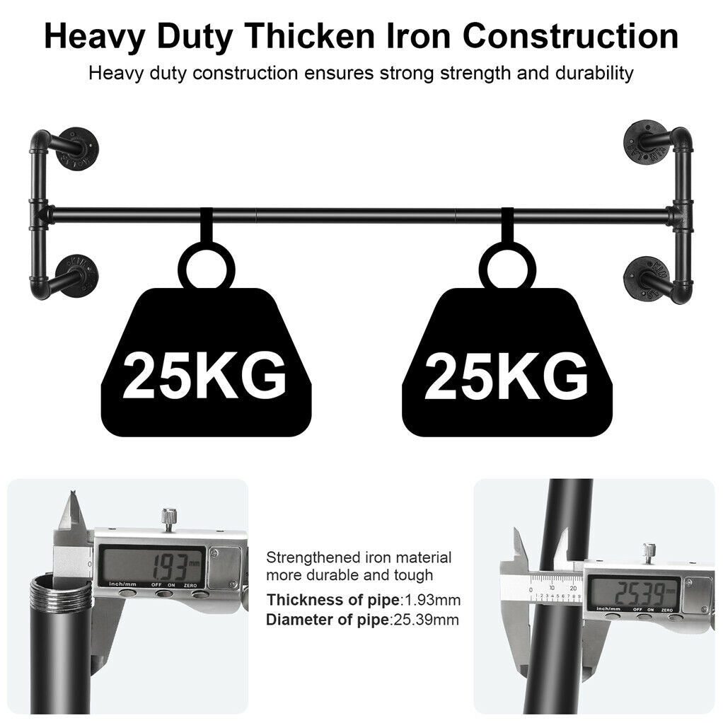 - Robust & Durable Design: Crafted from high-quality black pipe iron, this garment rack is designed to support up to 110 lbs, ensuring stability and durability for heavy-duty use. The integrated side frame enhances its strength, making it ideal for bulky coats, suits, and more.