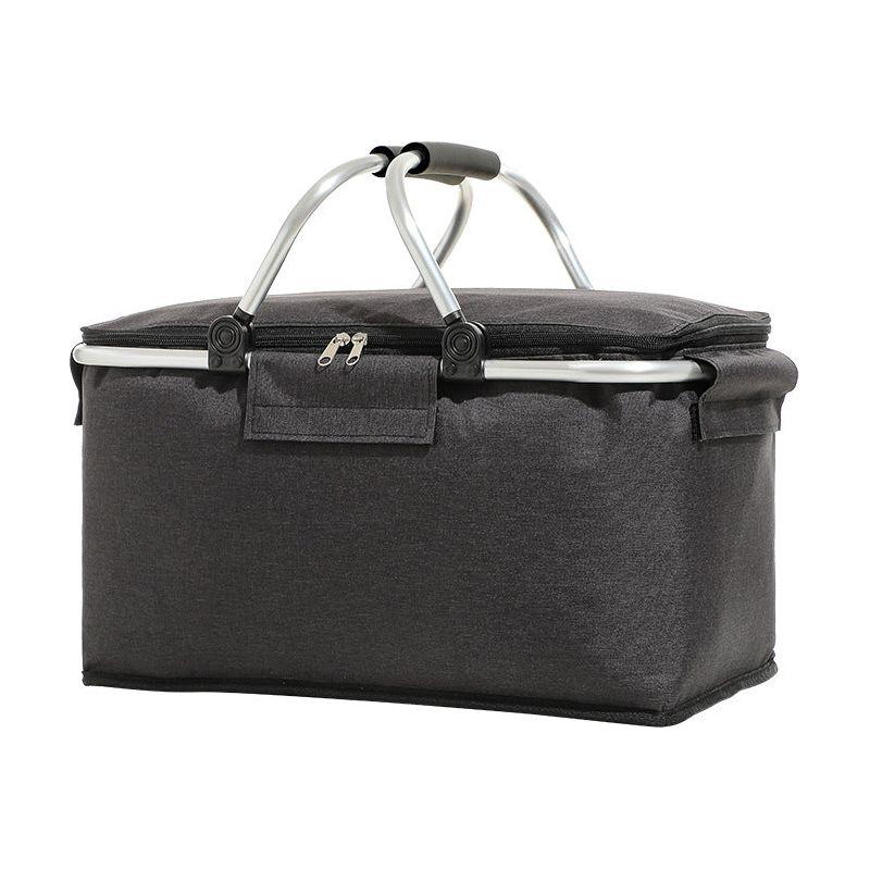 Black Portable Aluminum Foil Insulated Picnic Basket with Zipper Lid, 40x20x23cm