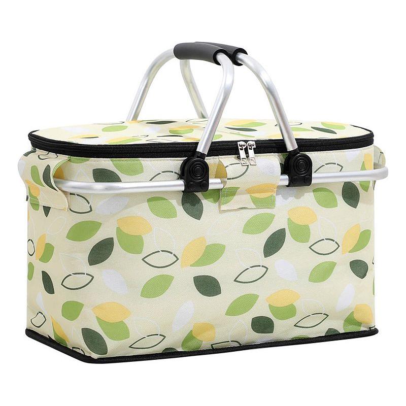 Green Leaves Portable Aluminum Foil Insulated Picnic Basket with Zipper Lid, 40x20x23cm