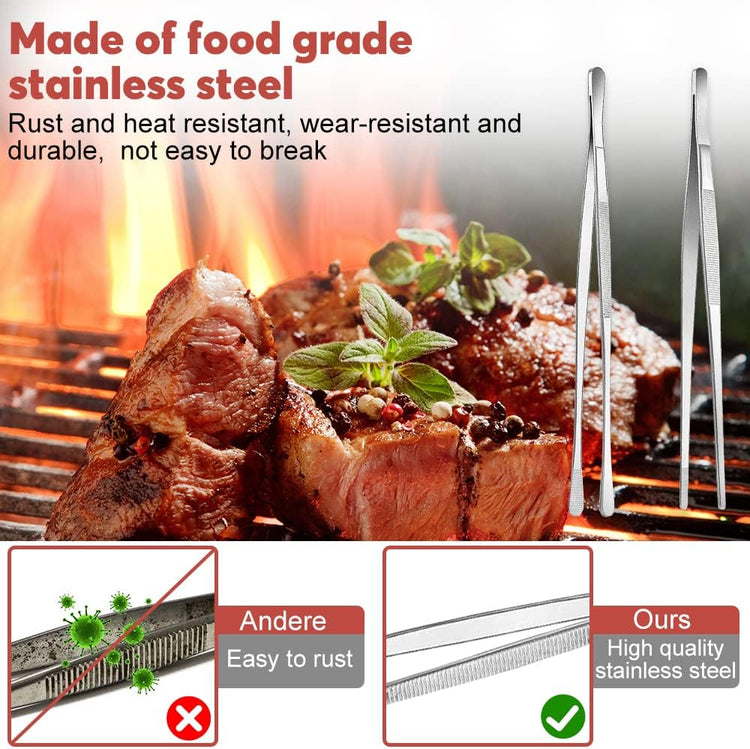 Cooking tongs ideal for roasting burgers and sausages, preparing tasty meats, steaks, cutlets, serving salads, buffets or decorating dishes, etc.
