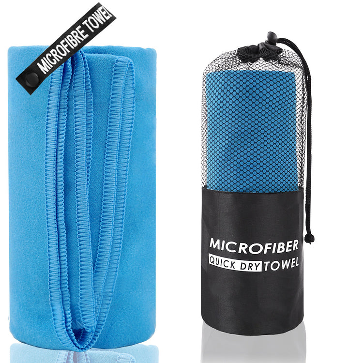 2-Piece Blue Quick-Dry Microfiber Sports Towel with Travel Case - Compact & Absorbent for Gym, Swimming & Camping