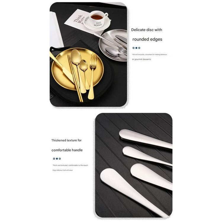 • Set Includes: Spoon (50g), fork (39g), chopsticks (18g), knife (74g), tongs (48g), plate (140g), and storage pouch