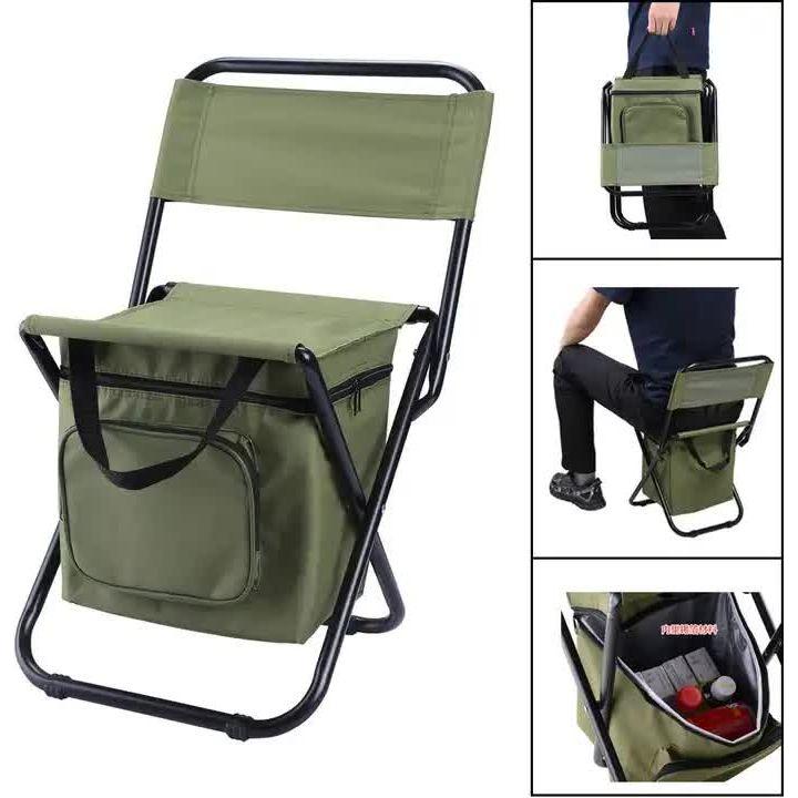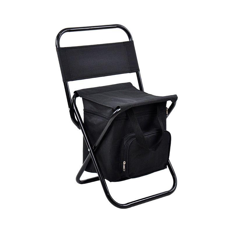 Black Portable 3-in-1 Folding Camping Chair with Storage Bag, Backrest, and Insulated Cooler for Outdoor Fishing, Hiking, and Picnics