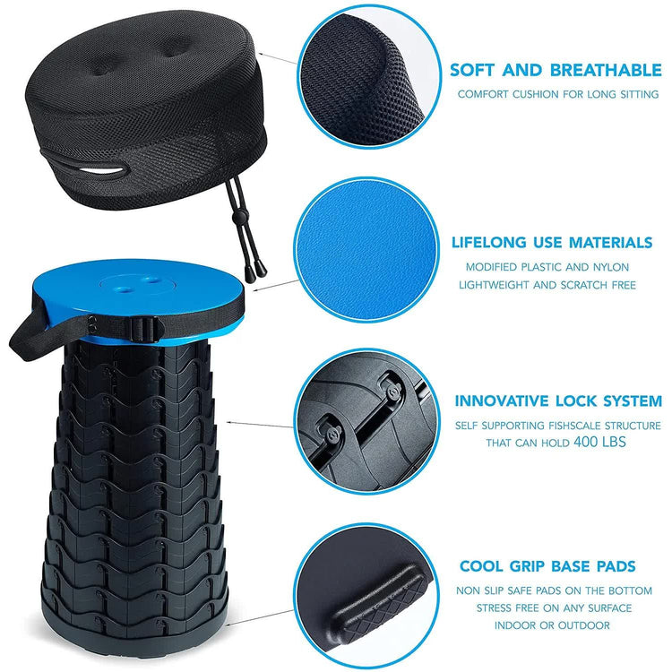 Blue Portable Outdoor Telescopic Folding Stool with 100 Weight-Bearing Buckles, Lightweight and Compact Design, Perfect for Fishing, Camping, and Travel