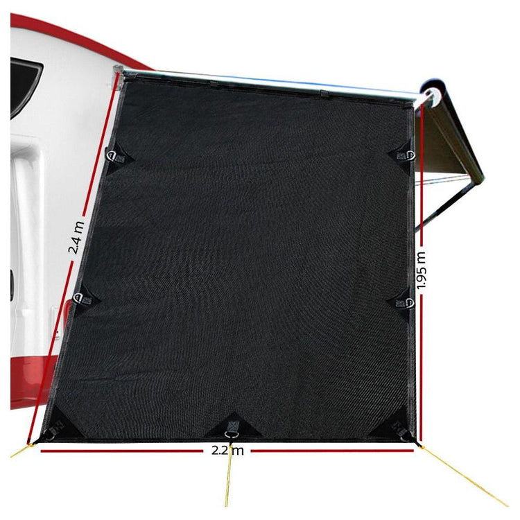Caravan Privacy Screen Roll Out Awning 1.95x2.2M Sun Shade End Wall Side Black