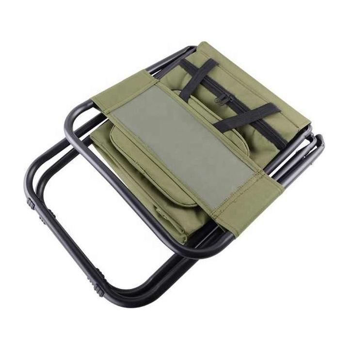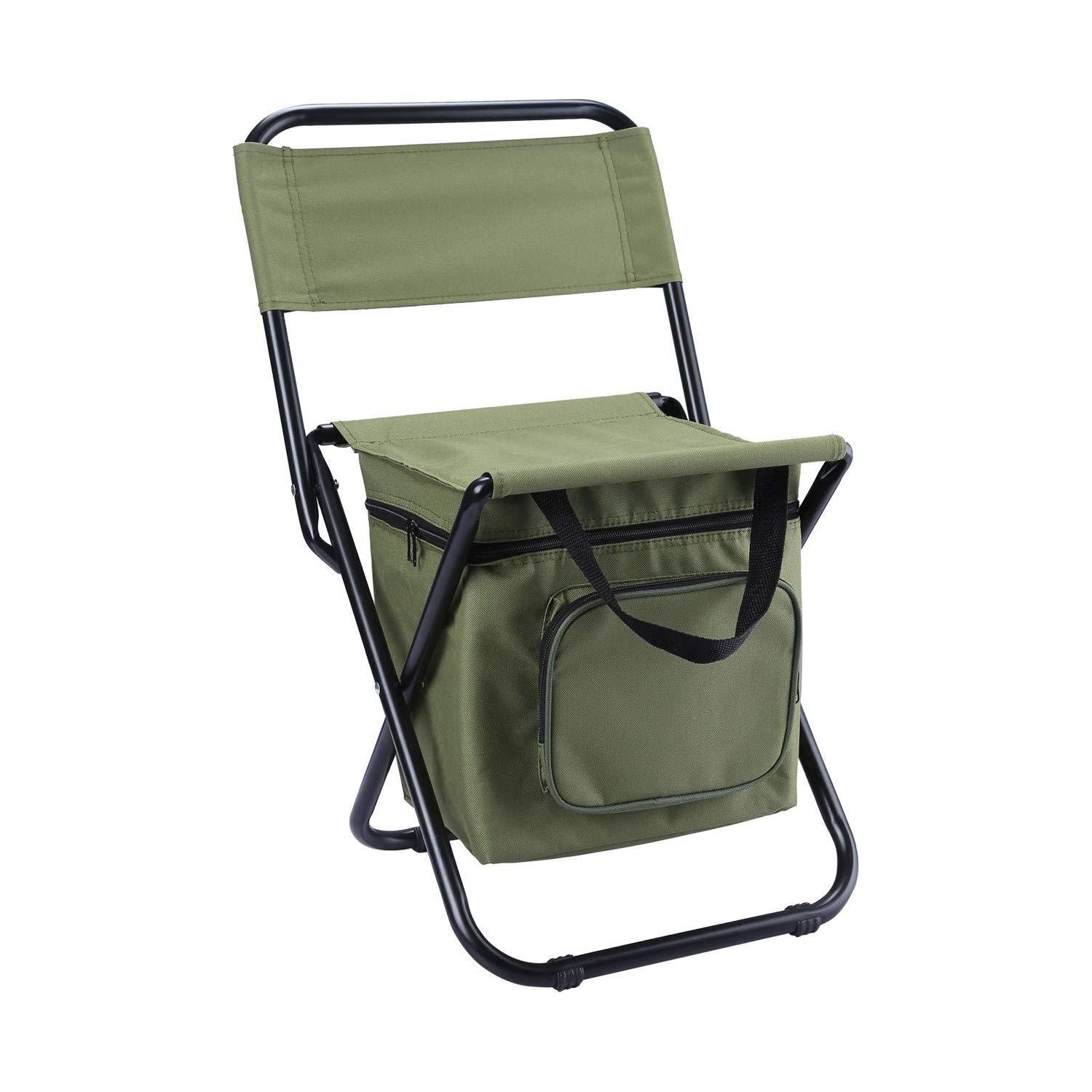 Green Portable 3-in-1 Folding Camping Chair with Storage Bag, Backrest, and Insulated Cooler for Outdoor Fishing, Hiking, and Picnics