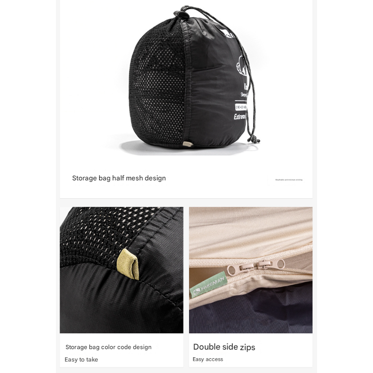 • Dual Zipper System: Features a convenient side zipper for easy entry and exit, plus a separate foot zipper allowing for temperature regulation and ventilation.