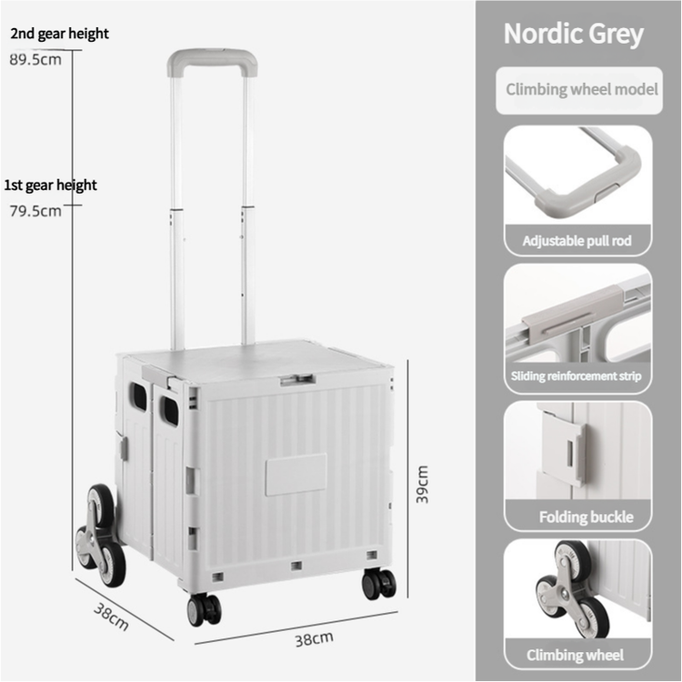Nordic Grey Climbing Wheel Folding Cart - Compact and Durable for Outdoor Camping and Picnics