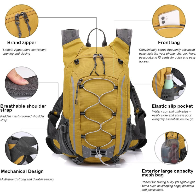 - Ideal for day hikes or travel, this lightweight hiking backpack for women and men offers a snug fit with its adjustable straps. The water-proof bag ensures protection, while its compact size makes it a must-have mini backpack for any adventure