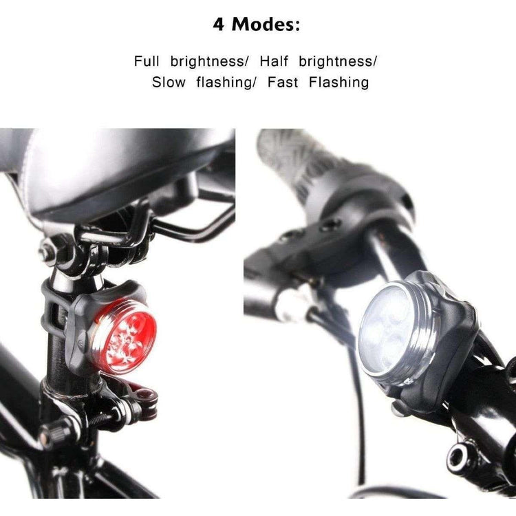 Four Light Mode Options: The Headlight and Taillight feature an one-touch switch with four different lighting modes depending on your preference. Include full brightness, half brightness, fast flashing and slow flashing.