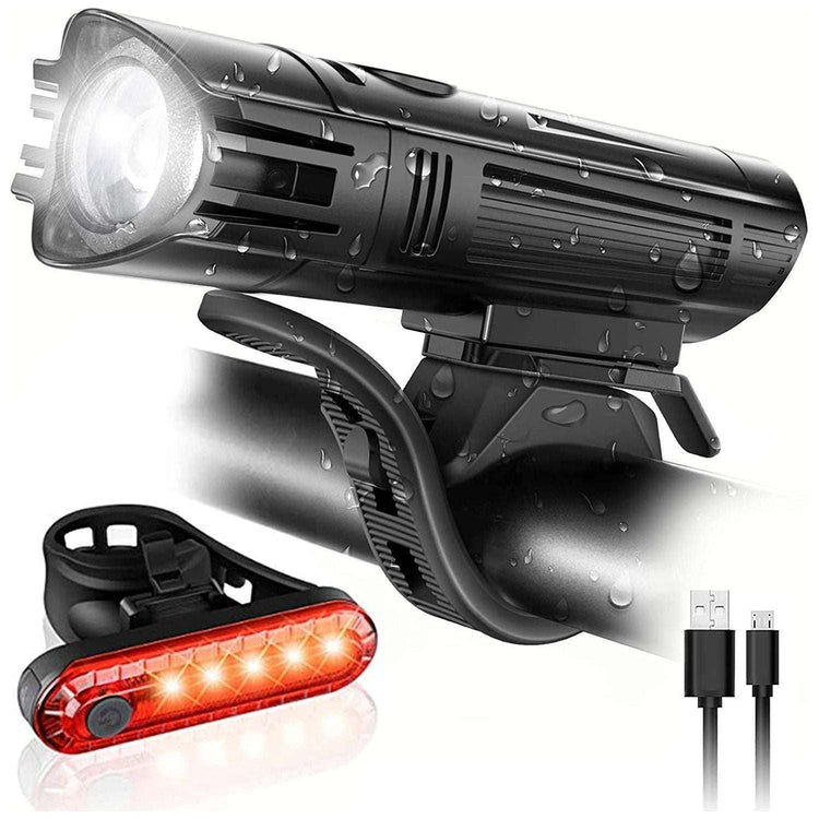 1 x Waterproof Rechargeable LED Bike Lights Set (2000mah Lithium Battery, IPX4, 2 USB Cables)