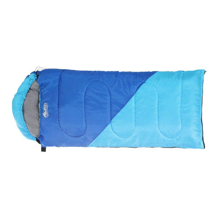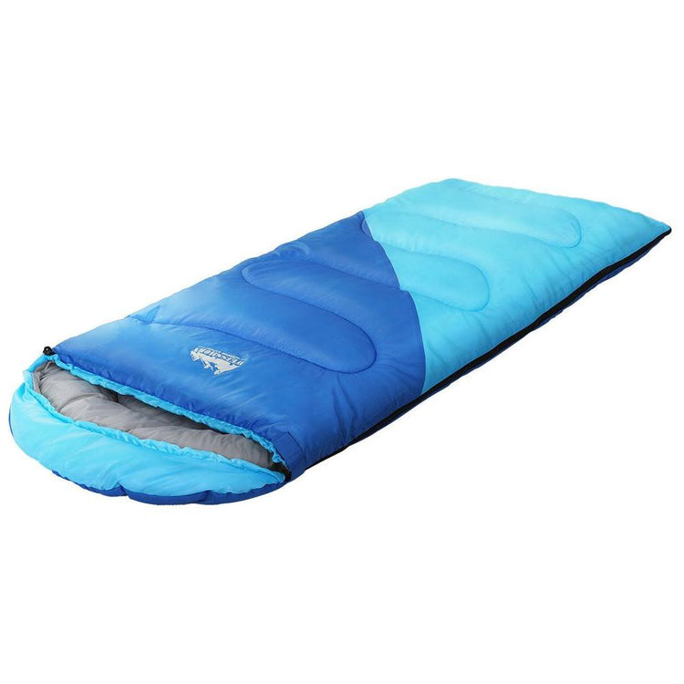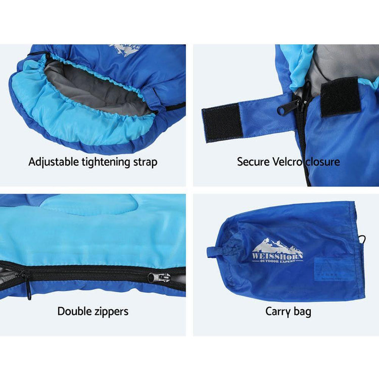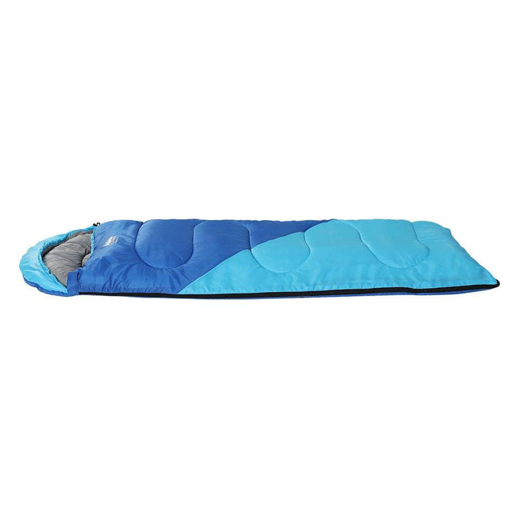 Dont let the chill ruin your next family holiday. Your kids can have a comfortable nights sleep in any weather with a Weisshorn 172cm Childrens Thermal Sleeping Bag. Suitable for temperatures between -5 and 20 degrees, the sleeping bag will keep your children cosy during long, cool nights. Filled with 250gsm hollow fibre filling and lined with soft polyester pongee fabric, the sleeping bag is soft, lightweight and water-resistant. It features an adjustable tightening strap, a secure Velcro closure, double-opening zippers and a convenient carry bag. The sleeping bag can also be used as a play or picnic mat when you need a soft surface for outdoor fun. The sleeping bag has a bright, colourful design that your kids will love. When youre out camping with the family and need more warmth, rug up with a Weisshorn Childrens Thermal Sleeping Bag.
