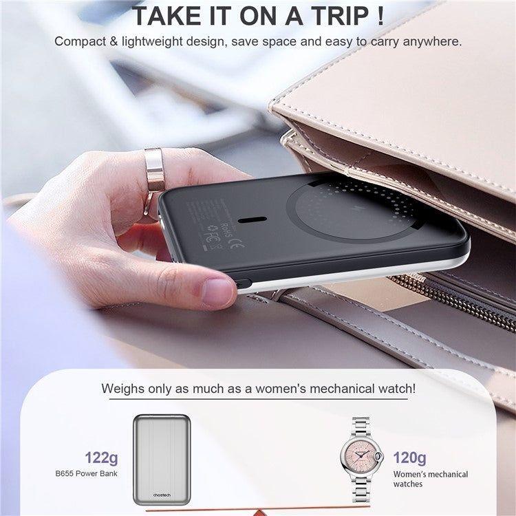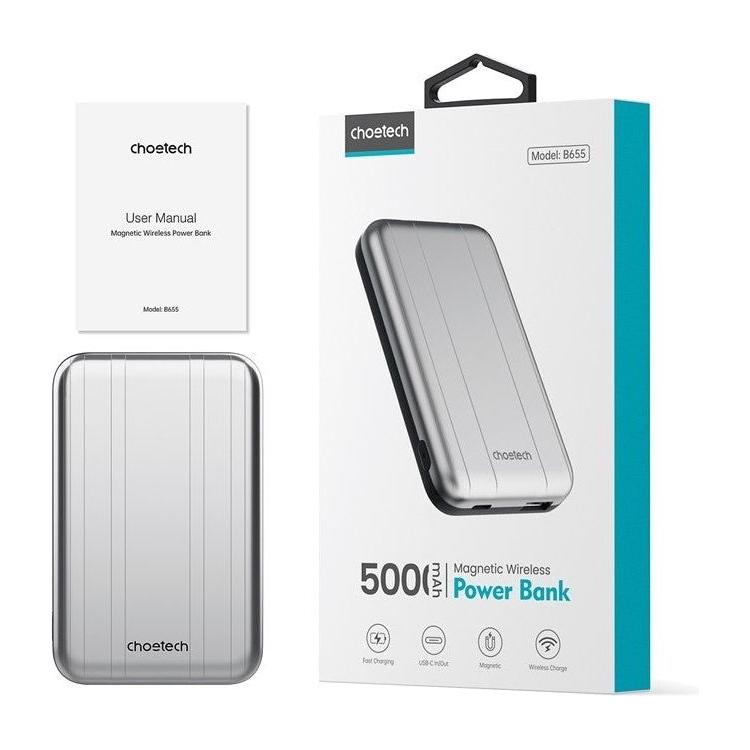 CHOETECH B655-SL 5000mAh Magnetic Wireless Power Bank 10W (Silver)