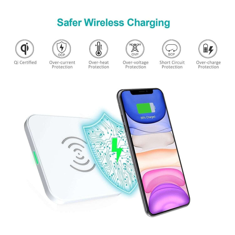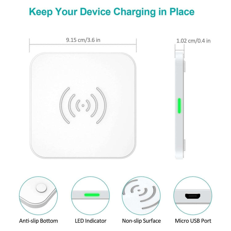 Ultra slim wireless charging pad with anti-slip rubber to keep it stays in place, wireless charging pad's indicators and compact build ensure simple and convenient charging.