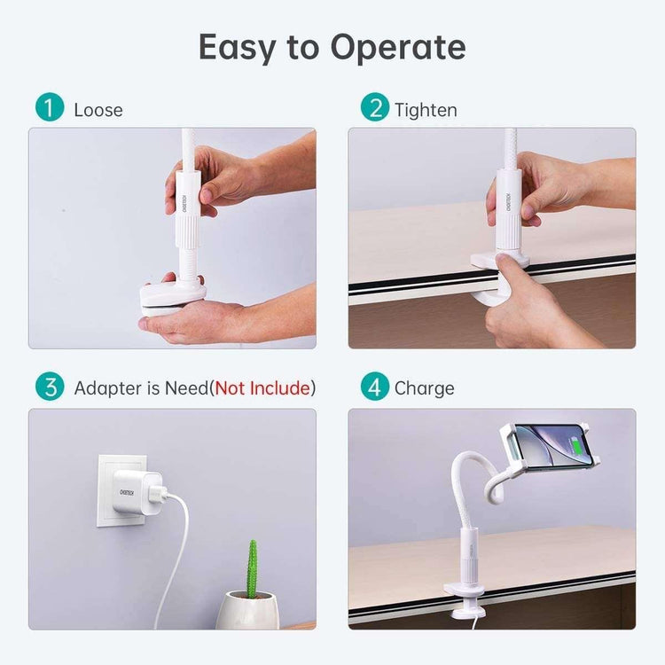 With 360 rotation clip on holder, flexible long gooseneck arm, You can freely adjust it to your best viewing angle when you're lying on your bed or sofa. Reduce neck fatigue and easily position your phone at the desired distance. It has a strong clamp to hold your phone securely. It's easy to attach on furniture such as table and bookshelf. (phone holder for bed)