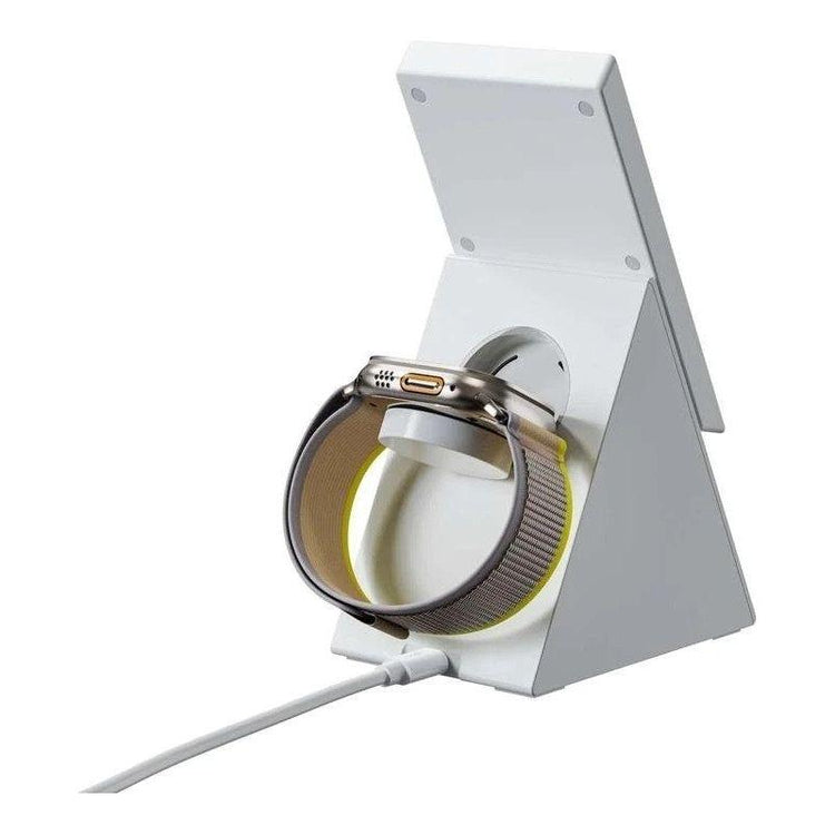 Allows for simultaneous charging of iPhone, Apple Watch, and AirPods. With its sleek white design, this charger holder combines functionality, elegance, and innovation to provide maximum efficiency and aesthetic appeal. Say goodbye to the hassle of using multiple chargers and take your wireless charging experience to the next level with the Choetech T600.
