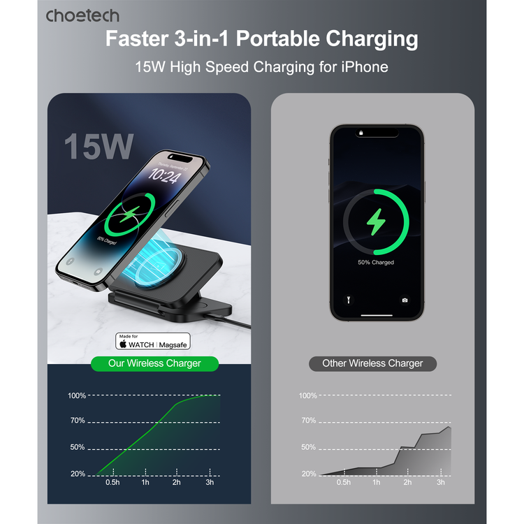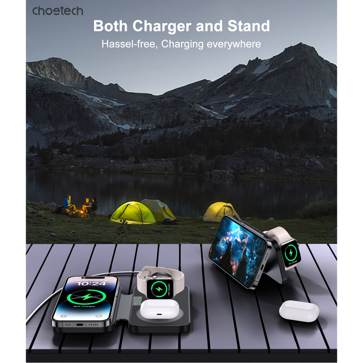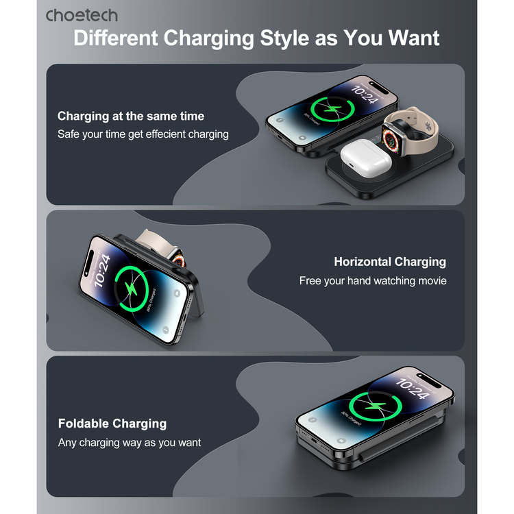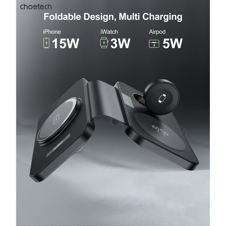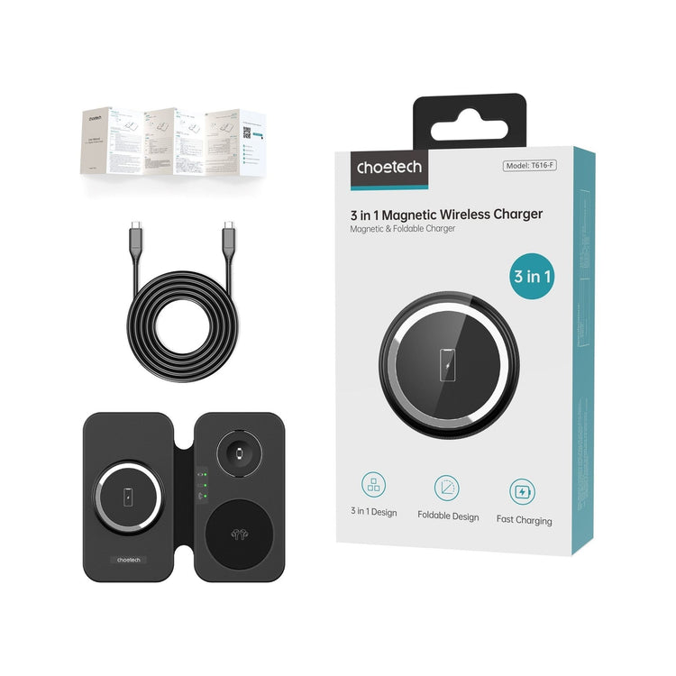CHOETECH T616-F-BK 3in1 Magnetic Foldable Wireless Charger Black