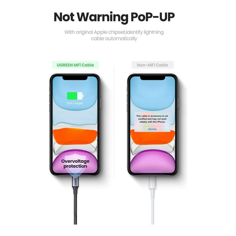 Built-in Original chip ensures 100% compatibility of charging and syncing with all 8-pin iPhone iOS devices. No warning message or pop-ups. [NOTE] UGREEN iPhone 8-pin charging cable upgrades simultaneously with the iOS system, built to last.