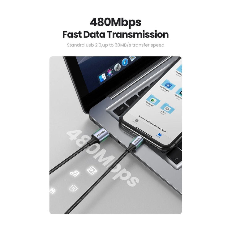 UGREEN 8-pin iPhone charging cable supports charge and sync simultaneously. Enjoy blazing-fast data transfer, and syncing, which is not inferior compared to original cables. It delivers high-speed transfers up to 480Mbps. Speed up the flow, and moves files faster.