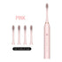 X-3 Sonic Electric Toothbrush, 4 Replacement Brush Heads, and USB Charging Cable - Sleek Pink Design