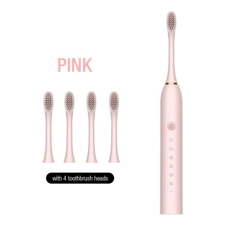 X-3 Sonic Electric Toothbrush - Experience advanced oral care with our in a sleek Pink finish. This set includes 4 replacement brush heads and a convenient USB charging cable, making it ideal for both travel and daily use. With multiple cleaning modes and powerful vibrations, it effectively removes plaque and keeps your teeth sparkling clean. Upgrade your dental routine with a touch of elegance and performance.