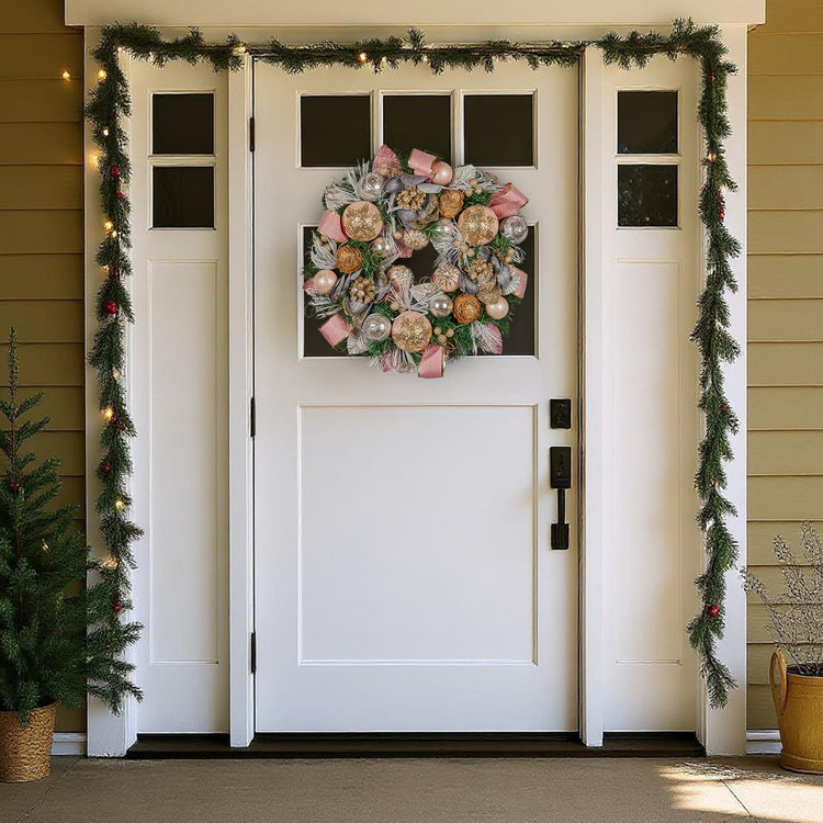 Christabelle 56cm Christmas Wreath Lush Green Holiday Door Wreath w/Jewelled Baubles, Foliage, Flowers, Pine Cones, Ribb