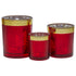 This set of 3 candle jars is crafted from thick, tough glass with a stunning red and gold finish and a gleaming silver interior.
