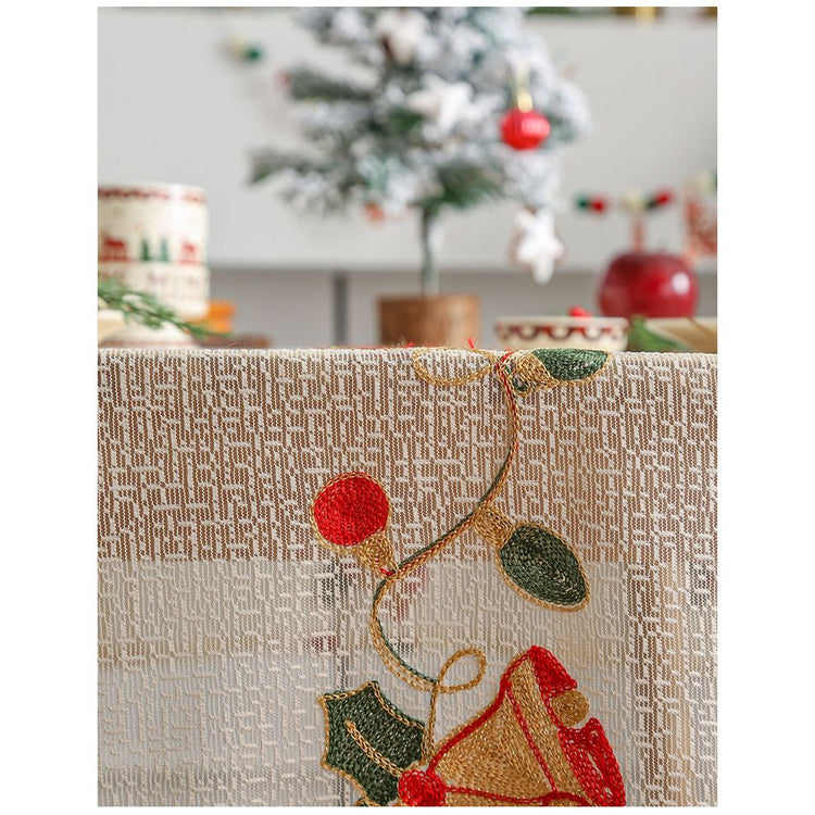 Embroidered Christmas Tablecloth - Embroidered Bells & Holly Design (140*305cm)