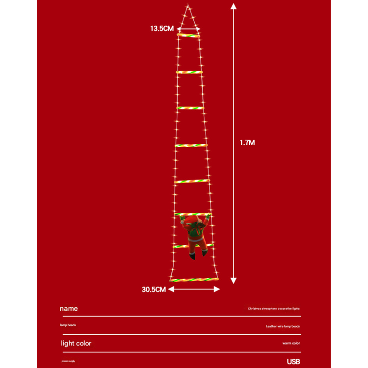 - WHIMSICAL HOLIDAY DECORATION: A fun and festive design featuring Santa Claus on a 1.7m rope ladder with candy-cane style rungs, adding a playful touch to your indoor or outdoor Christmas setup.