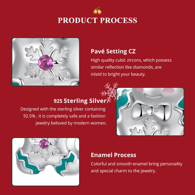 - Festive design: Beautiful gingerbread man charm with pink accents and intricate snowflake details