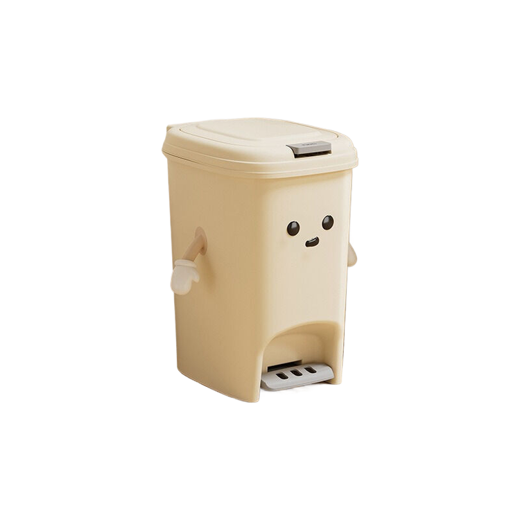 Cream white 8L foot pedal trash can U Fun style 20cm * 27.5cm * 27.5cm, material: PP. Packaging: independent cardboard box+bundled