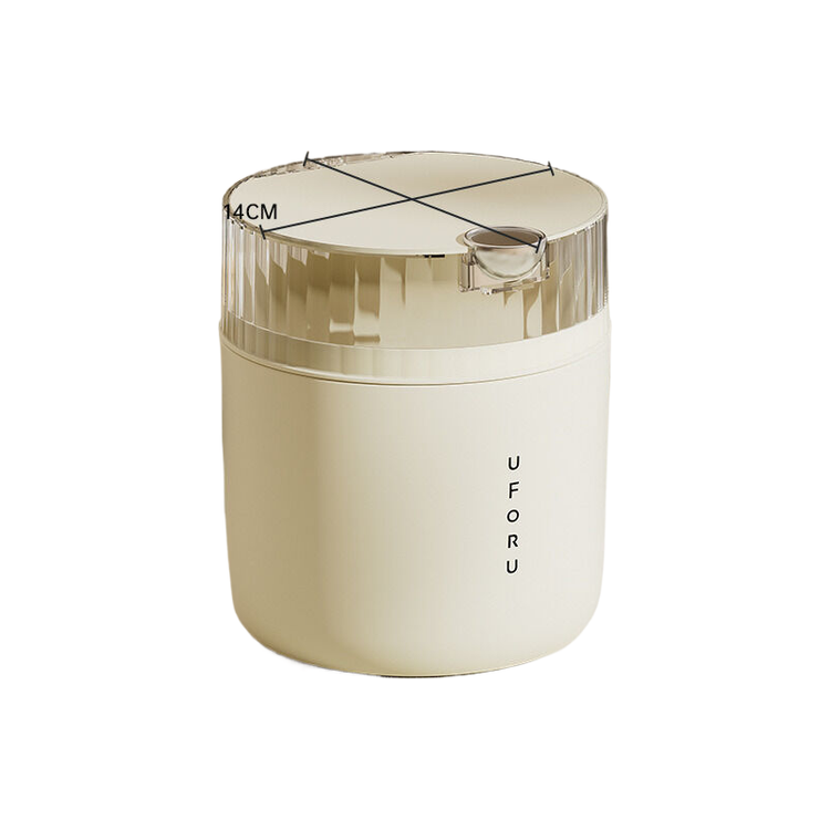 Cream white desktop trash can (standard with one roll of garbage bag) 14cm * 15cm (including button) * 16cm, material: transparent: PET gold plating: ABS solid color: PP, packaging method: independent cardboard box+bundling