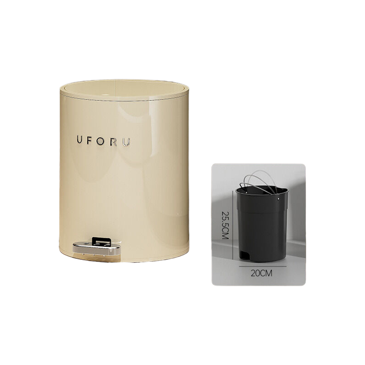 Cream white round (iron) double open trash can, 9 liters, material: stainless steel+PP+ABS
