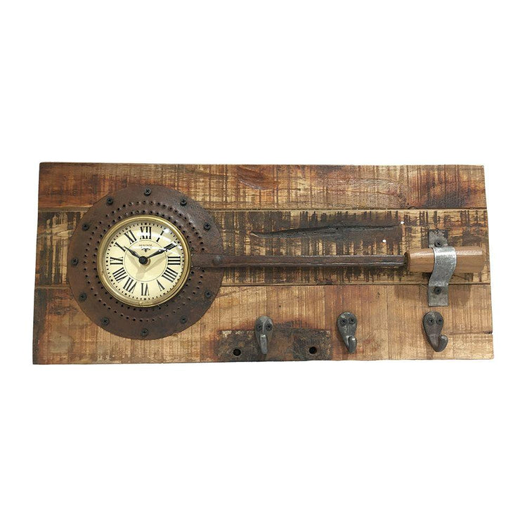 Product Name: Old Iron Frying Pan On Recycled Mango Wood Board Model #TC-111 Pack Contents: Table Clock Key Attributes: Hand Crafted, Battery Operated, Decorative, Antique Finish Uses: Home Decor, Gift, Souvenir, Collectable, History, Art and Craft. Length: 535 mm (Approx) Width: 240 mm (Approx) Height: 70 mm (Approx) Weight: 2.25 kg (Approx)