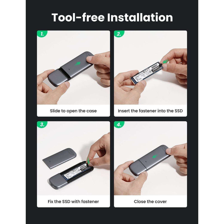 The M.2 USB-C Enclosure is designed to house a M-Key or M+B Key NVMe PCIe SSD and turn it into a portable USB 3.1 external drive for maximum utilization. Tool-free and no driver needed, just plug and play. Ideal for cloning files, backing up data, reusing old M.2 SSD, expanding storage space.