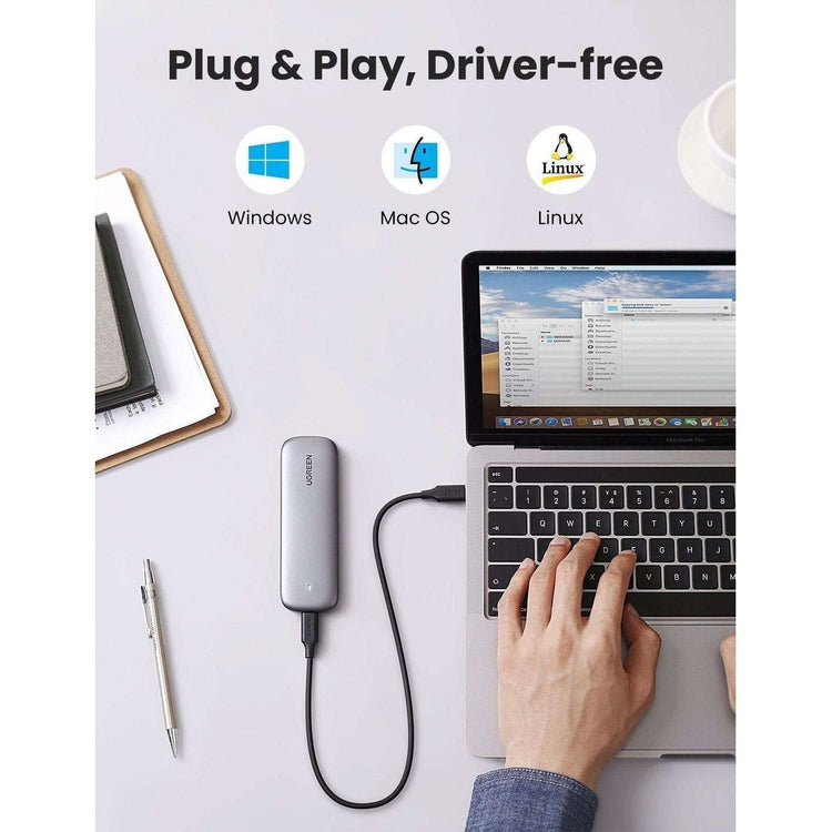 USB C 3.1 Gen2 interface and comes with a 0.5m USB-C to USB-C cable. Work straight with USB-C/Thunderbolt 3 laptops & desktops or OTG enabled phones/tablets, compatible with MacBook 2016, MacBook Pro 2017, MacBook Air 2018, Samsung Galaxy Tab S4 10.5/S8/S9, Lenovo XPS 15/13, Google Pixelbook, Acer Chromebook R11.