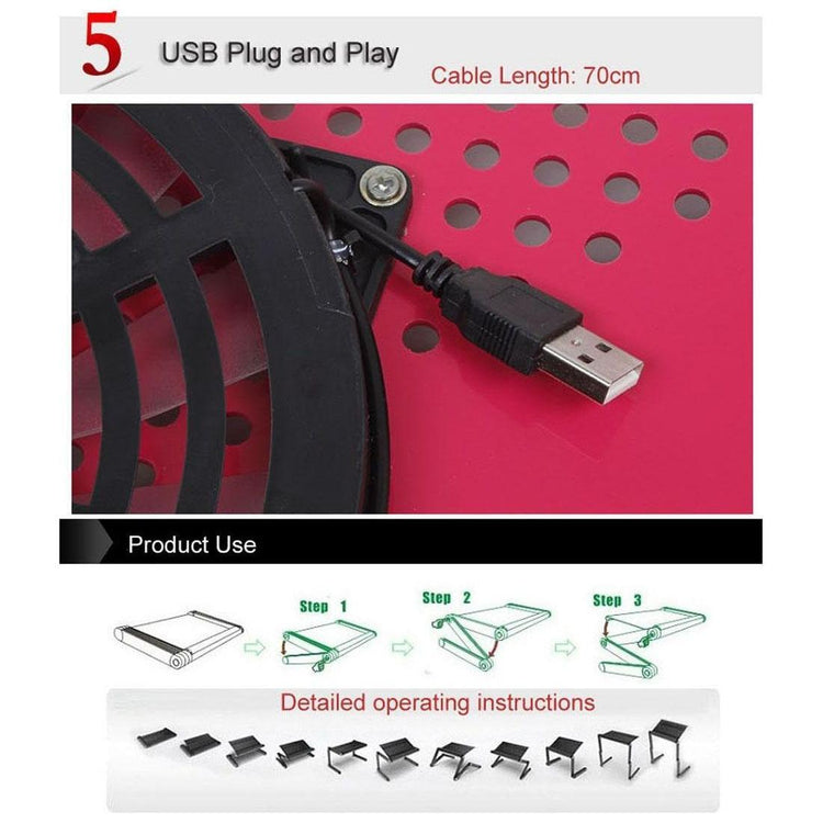 • 360-degree foldable and fully adjustable laptop table desk