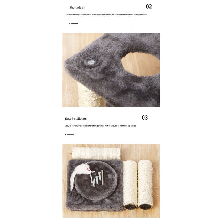 - Scratching Posts: Durable sisal-covered scratching posts satisfy your cat's natural instincts and help protect furniture.