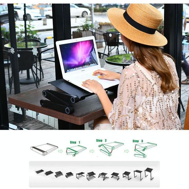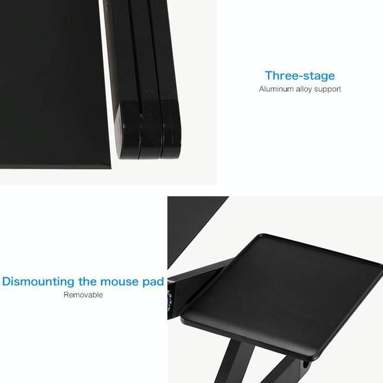 Foldable Laptop Stand With Dual Fans & Mouse Pad - 360 Degree Adjustable - Black