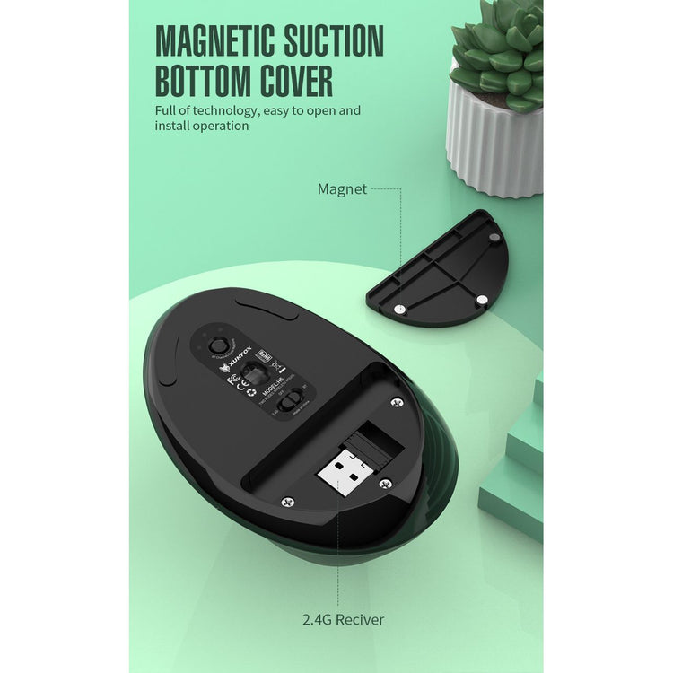 Discover a new level of comfort and efficiency with our ergonomic vertical wireless mouse. Designed with a light luxury appearance, this mouse is shaped to fit the natural contours of your hand, promoting a healthier wrist and arm posture to reduce strain during extended use. It offers dual-mode wireless connectivity, supporting both 2.4G USB receiver and Bluetooth (BT1/BT2) connections for seamless pairing with multiple devices like laptops, desktops, and tablets. Enjoy precise control with 5 adjustable DPI settings, silent clicks for a quiet workspace, and convenient Type-C recharging. The mouse features intelligent LED indicators for battery status and a magnetic bottom cover for easy access to the 2.4G receiver.
