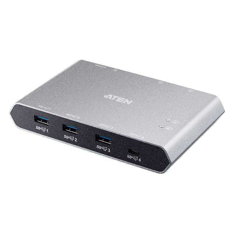 ATEN US3342 is a 4-port USB 3.2 Gen 2 peripheral sharing device that allows users to share data between four USB devices in two different USB-C enabled laptops. The US3342 is USB 3.2 Gen 2 compliant, which can support data transfer rate up to 10Gps, and also compatible with USB 3.1 Gen 1, USB 2.0 and USB1.1.