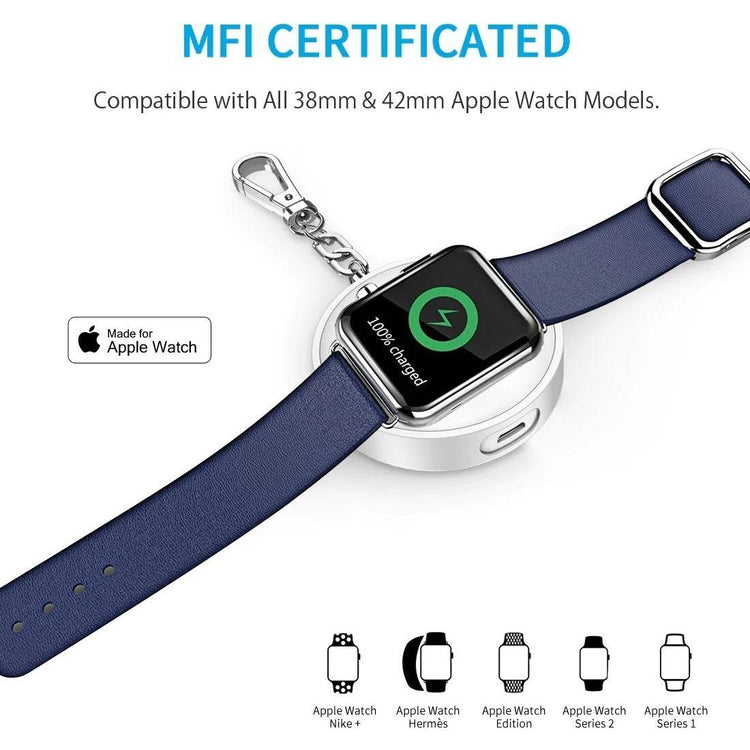 The portable Apple Watch charger could be safely used with confidence on all Apple Watch versions, compatible with Apple Watch Series 1/2/3/4/5/6/SE/7/8 38mm/40mm and 42mm Apple Watches.