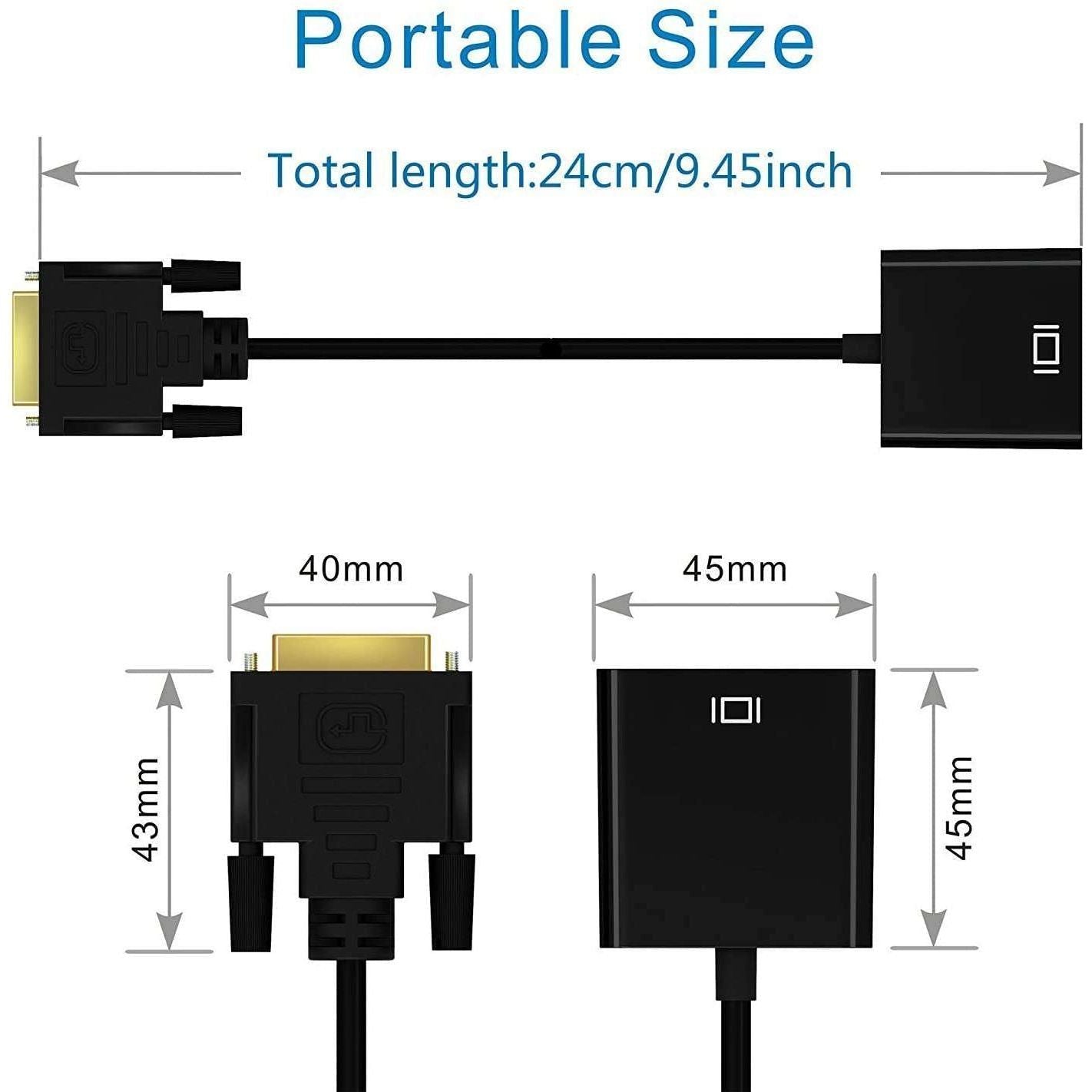 DVI-D to VGA Converter connects desktop computers and laptops major brands like Lenovo, Dell, HP, ASUS, etc. with DVI-D to VGA displays, supporting HDTV resolution up to 1080p 60Hz and PC graphics resolutions up to 1920 x 1200 60Hz.