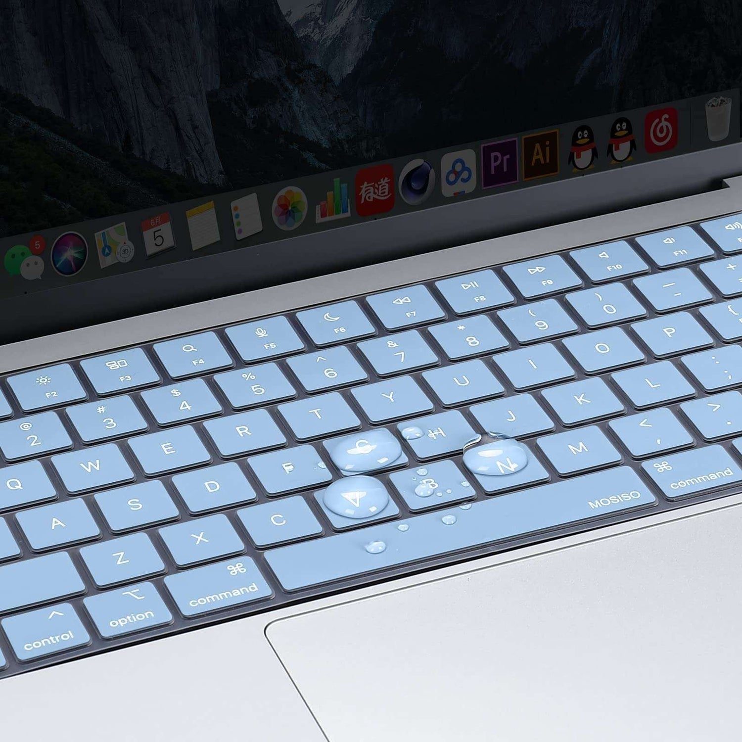 Keyboard Cover Skin For MacBook Air Pro 13 13.6 14 15.3 16 A2442 A2779 A2485 A2780 A2681 A2941 M1 M2 2021 to 2023 Sky Blue
